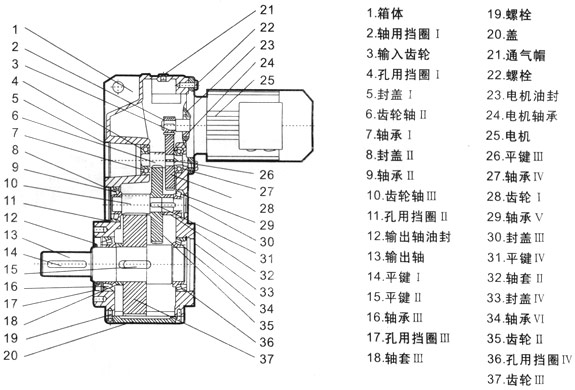 1.特點(diǎn):平行軸輸出、結(jié)構(gòu)緊湊、傳遞扭矩大、 工作平穩(wěn)、噪音低、壽命長。